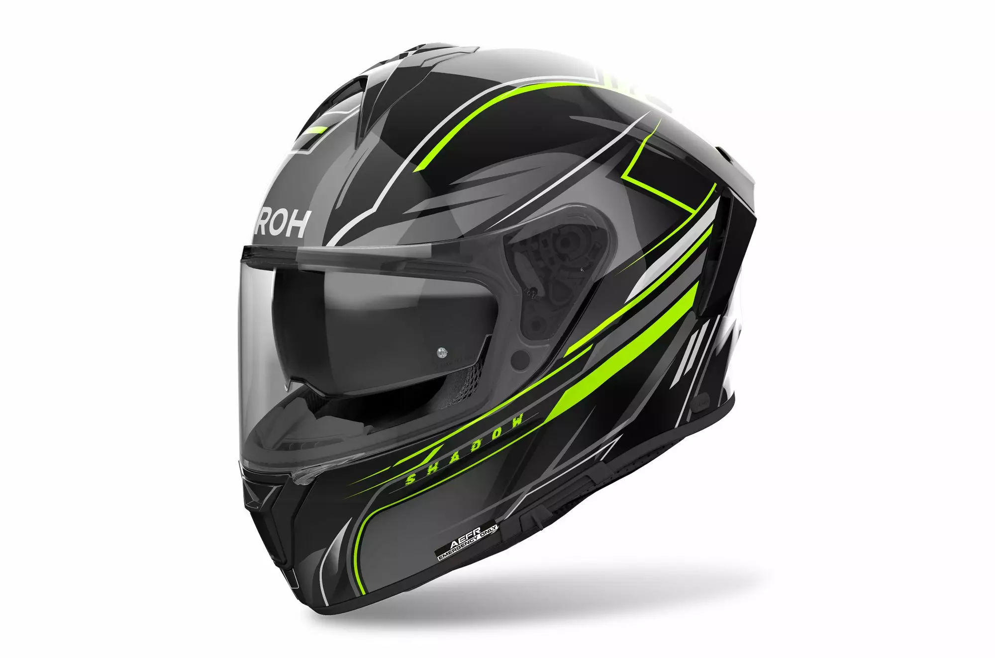 Visir: Extra bred sikt, ATVR (Airoh Tool-less Visor Removal), Antifog-position, Låssystem, Rep- och UV-resistent