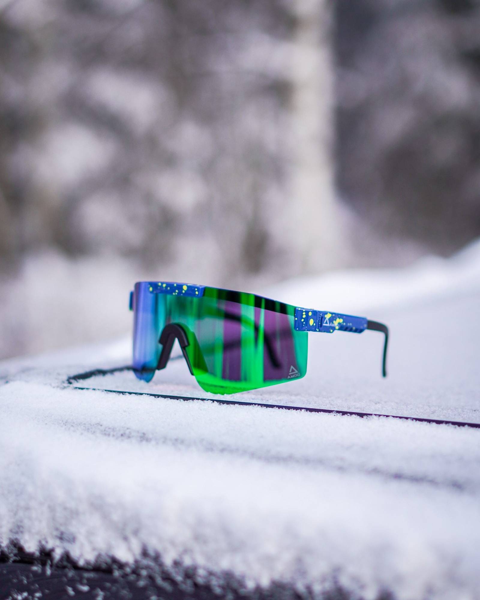 AMOQ Comet Solglasögon Blå Splash - Grön Spegellins