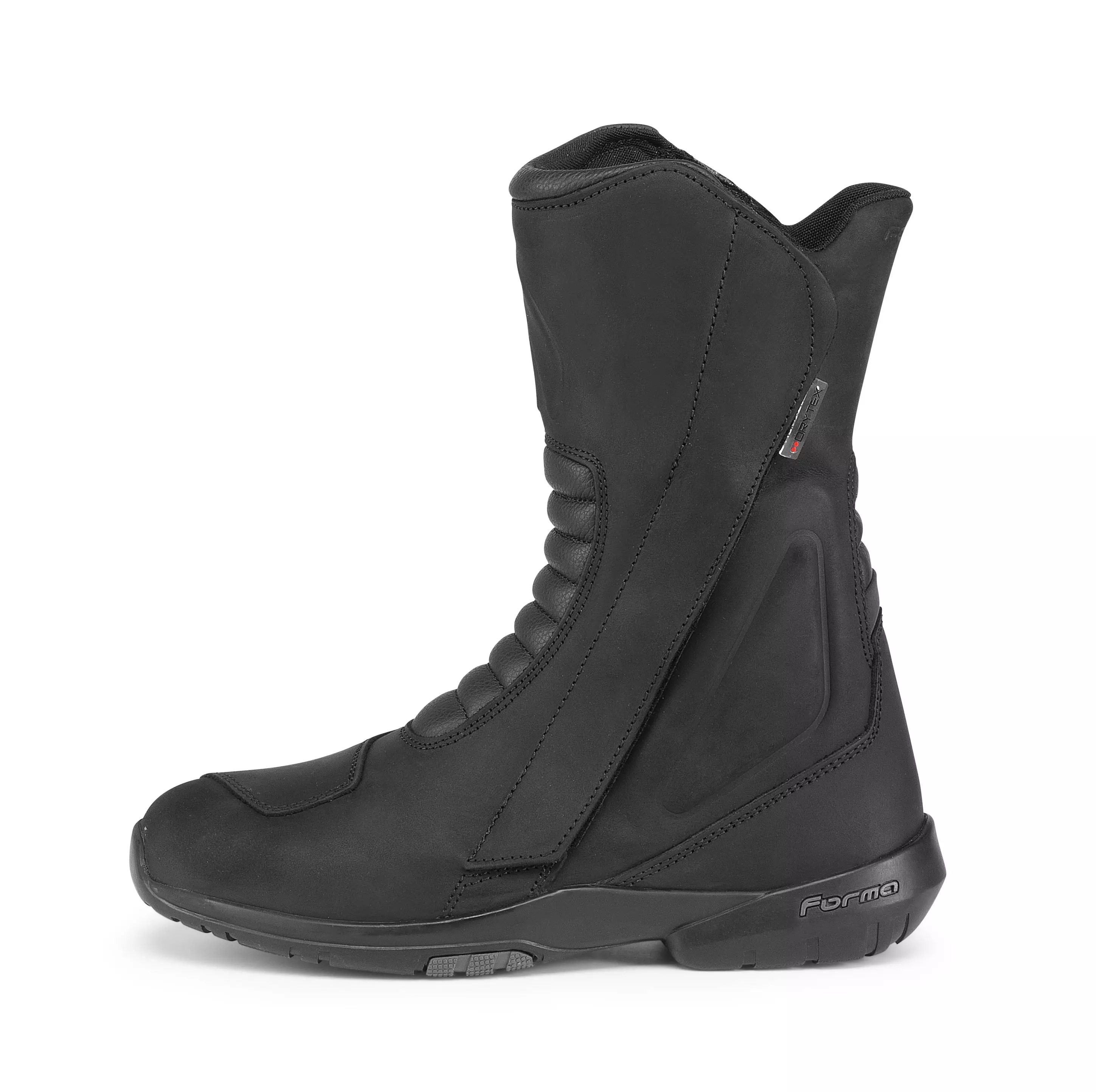 Forma Frontier Dry touringstövlar kombinerar komfort, skydd och stil. Tillverkade i fullnarvat oljebehandlat läder med ett Drytex® vattentätt, ventilerande membran håller de fötterna torra i väta fö rhållanden. Viktiga skyddsfunktioner inkluderar TPU ankelmalleolusskydd, förstärkt häl och tå, touring‑sula för grepp och stabilitet, växselspetsförstärkning och stötdämpande EVA‑mellansula för komfort på långa turer. Double YKK® dragkedja + kardborre ger en säker, justerbar passform. Teknisk innersula och premiumkonstruktion ger pålitlig komfort hela dagen. CE‑certifierad enligt EN 13634 (2/2/2/1 WR).