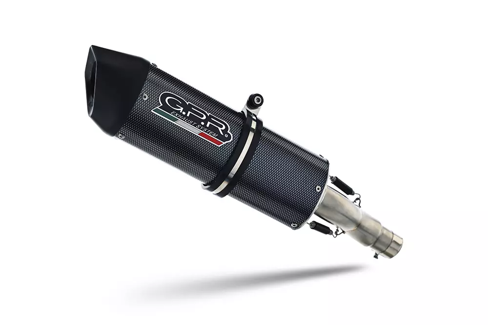 GPR's Furore Poppy silencer has a carbon look, stainless body and has been developed with a production process that produces zero impact to the environment. It has an oval shape with a diameter of 120MM, with avional bottoms produced by CNC machining.