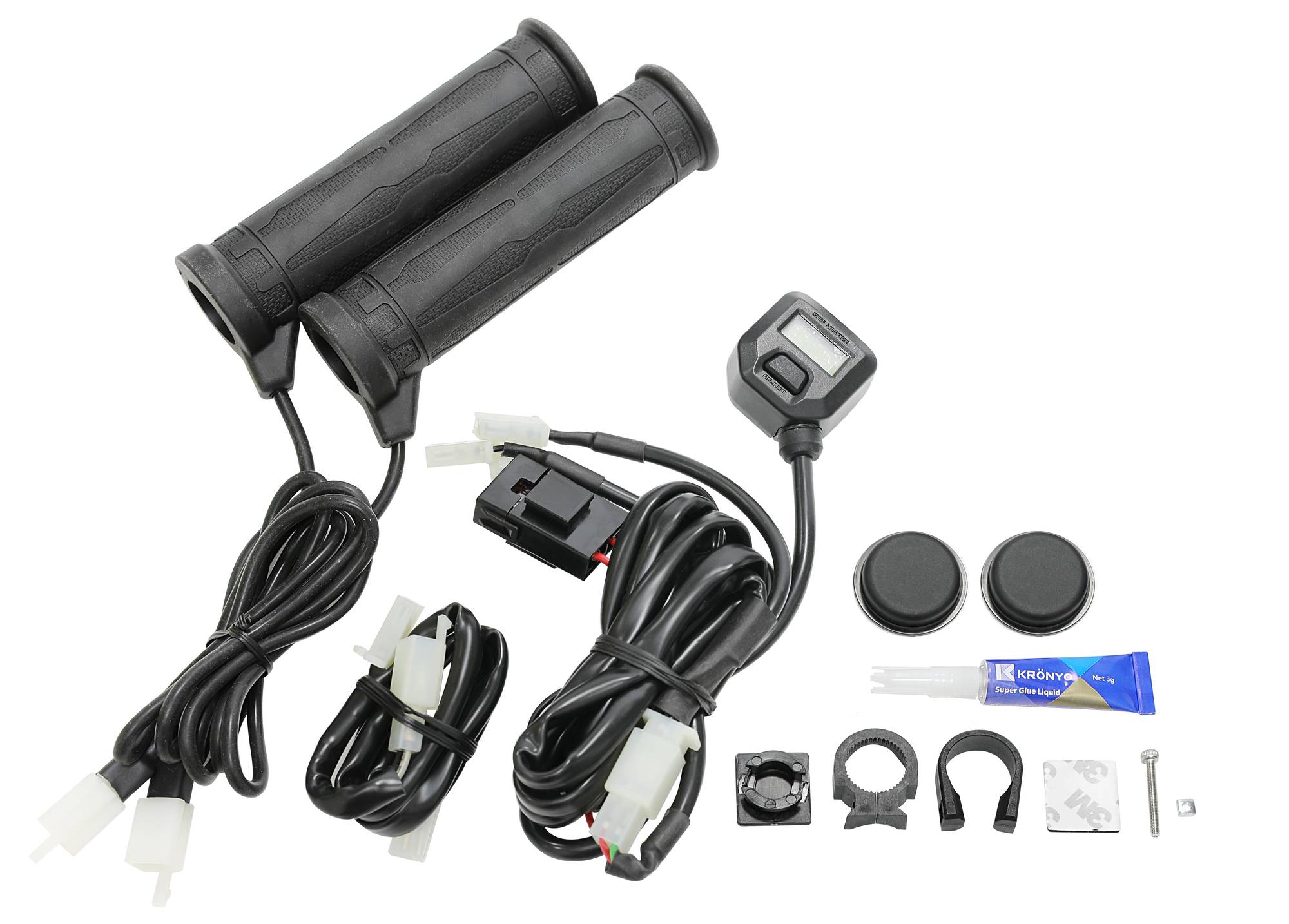 HANDTAGSFUNKTIONER: Endast DC 12V För 25mm styren Justerbar med 5 olika värmenivåer Handtagslängd 130mm Voltmätare (lågspänningsvarning)
