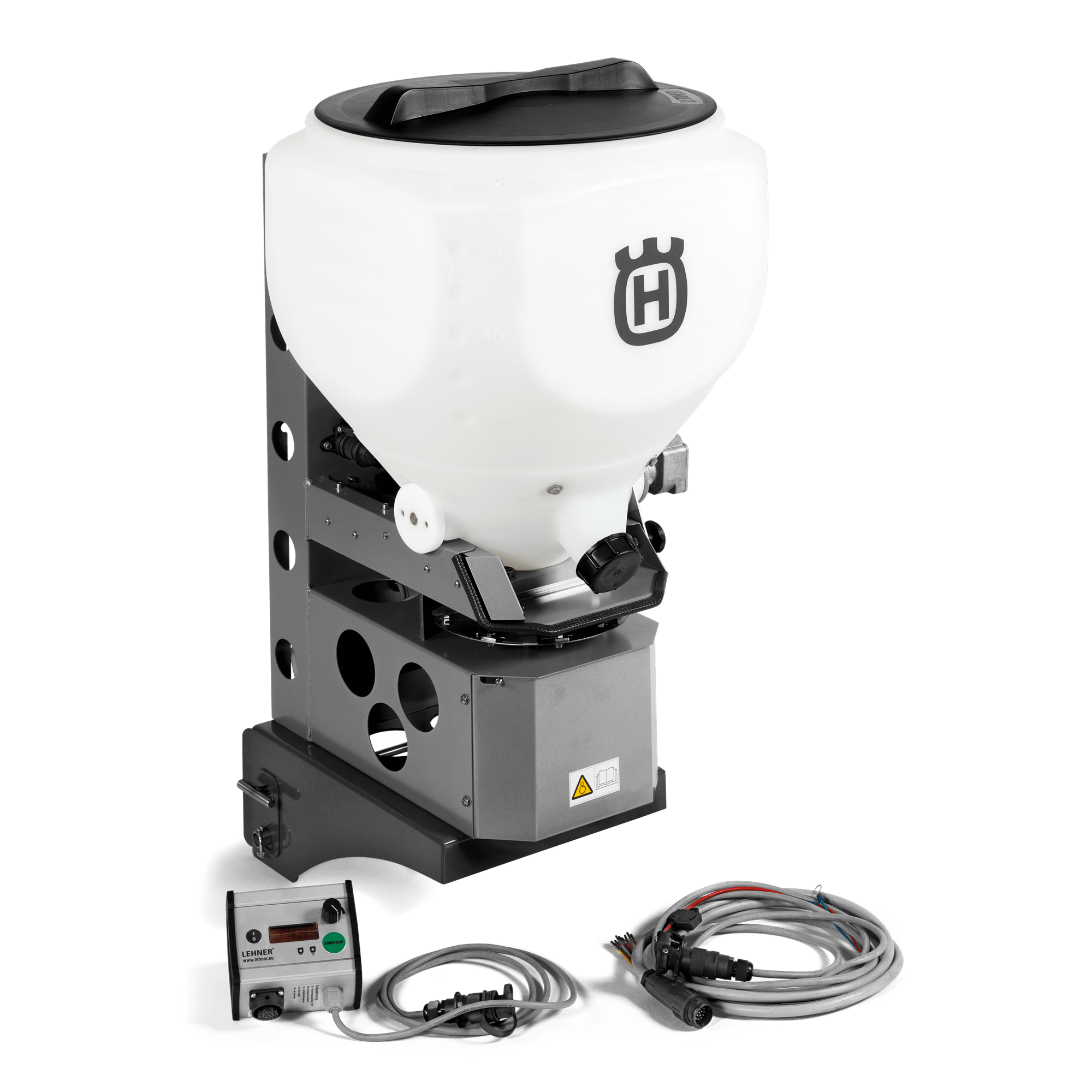 En högkvalitativ spridare för professionell användning. Kan används för att sprida salt, sand, grus, gödning eller frön i storlek upp till 6 mm. Levereras komplett med kablar, kontrollplanel och fästanordning. Alla funktioner hanteras på kontrollpanelen från förarsätet. Steglöst justerbar hastighet för rotationsplattan och ett lock som kan öppnas och stängas ifrån förarstolen.