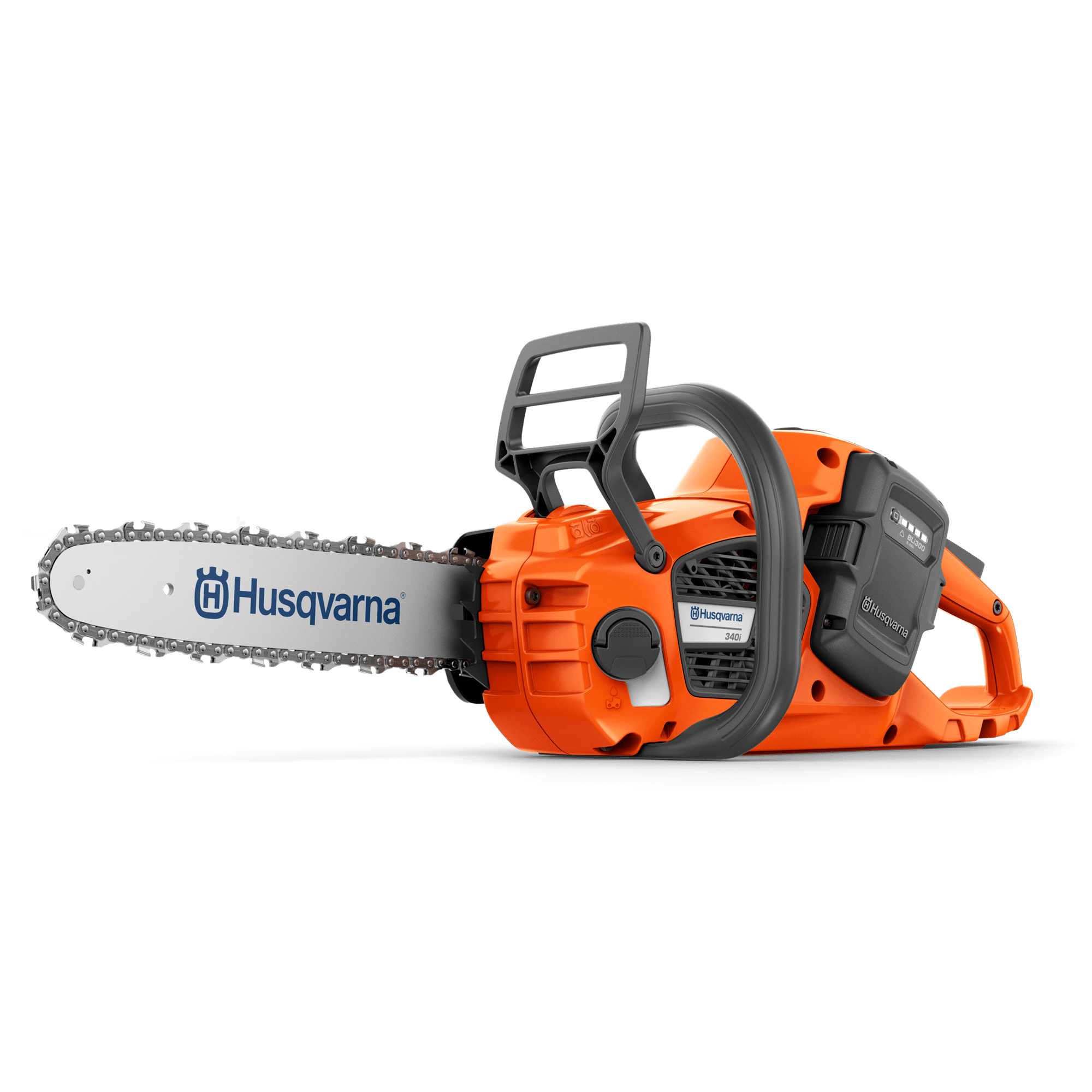 Husqvarna 340i är en kraftfull och lätt batteridriven motorsåg som är lätt att använda. Den har utmärkt skärförmåga för alla tillämpningar, till exempel fällning, beskärning, vedhuggning och snickeri. Utmärkt manövrerbarhet tack vare den smala sågkroppen, vilket håller tyngdpunkten nära handtagen. Låga vibrations- och bullernivåer samt ett smart användargränssnitt med tydlig batteristatus på handtaget. Verktygslös eller vanlig kedjespänning. Enkel att använda med både internt batteri och ryggburet batteri.